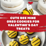 These Bee Mine Oreo Cookies are a delightful and charming treat perfect for gift-giving or special occasions. Oreo cookies are dipped in creamy white candy coating, then decorated with adorable hand-crafted bees made from yellow fondant and detailed with edible markers and heart-shaped sprinkles. The result is a whimsical combination of sweet flavors and cute designs that will impress friends and family.