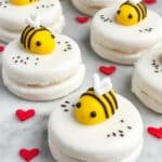 - Add Heart Sprinkles: Also affix a red heart sprinkle on the opposite side of the bee on each cookie with melted white candy coating.
