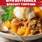 Keywords: peach cobbler, skillet peach cobbler, easy peach dessert, southern cobbler, biscuit topping, fruit cobbler