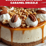 - Assemble and Serve: Pour the browned butter caramel sauce over the chilled cheesecake. Top with whipped cream and garnish with pecan halves. Slice and serve to enjoy this decadent dessert.