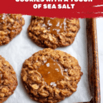 Delightfully chewy caramel oatmeal cookies featuring a perfect balance of rich butter, brown sugar, and bursts of toffee and caramel. These cookies are topped with flaked salt for a sophisticated salty-sweet contrast, making them an irresistible treat for oatmeal cookie lovers looking to elevate their cookie game.