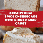 Keywords: chai cheesecake, chai spice cheesecake, spiced cheesecake, ginger snap crust cheesecake, cream cheese dessert, fall desserts