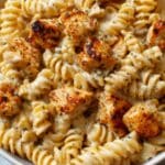 PrintCheesy Cajun Garlic Chicken Rotini Skillet Recipe
