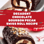 This Chocolate Bourbon Pecan Swiss Roll is a decadent dessert featuring a rich cocoa sponge cake wrapped around a creamy bourbon-infused filling. Topped with luscious chocolate ganache, caramel sauce, and crunchy pecans, it’s perfect for special occasions or whenever you crave an indulgent treat.