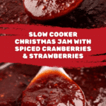 Keywords: Christmas jam, holiday jam recipe, cranberry strawberry jam, slow cooker jam, festive jam, homemade jam