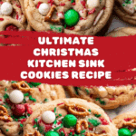 Sweet and salty Christmas Kitchen Sink Cookies packed with pretzel and potato chip pieces, red and green M&M’s, white chocolate chips, and festive sprinkles. These chewy, colorful cookies combine a variety of flavors and textures, perfect for holiday celebrations or baking with kids. They require no chill time and bake quickly, making them an easy and fun festive treat.