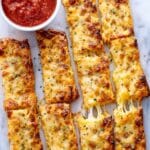 - Serve: Arrange the cheesy bread on a serving plate and serve warm with marinara sauce on the side for dipping.