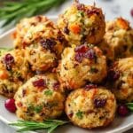 Keywords: stuffing balls, turkey stuffing, cranberry stuffing, holiday appetizers, baked stuffing balls, festive recipes, turkey recipes, bite-sized appetizers