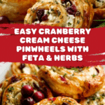 Cranberry Cream Cheese Pinwheels with Feta & Herbs bring a delightful mix of creamy, tangy, and fresh flavors wrapped in flaky puff pastry. These bite-sized appetizers are perfect for holiday parties or casual gatherings, offering a beautiful balance of sweet cranberries and savory cheese.