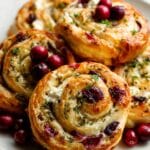 Keywords: Cranberry pinwheels, cream cheese appetizers, puff pastry snacks, holiday appetizers, feta and herbs pinwheels, baked finger foods