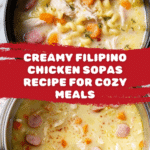 Chicken Sopas is a comforting Filipino macaroni soup made with tender shredded chicken, hotdog slices, vegetables, and macaroni noodles simmered in a flavorful broth enriched with evaporated milk. This hearty and creamy soup is a popular comfort food, perfect for warming up on chilly days or as a soothing meal any time of the year.