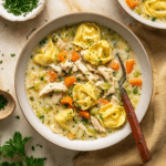 This Creamy Chicken Tortellini Soup is a comforting and flavorful dish combining tender shredded chicken, cheese tortellini, and a rich, creamy broth enhanced with garlic, Italian seasonings, and fresh vegetables. Perfect for a hearty meal, it offers both stovetop and slow cooker methods for versatility and ease.