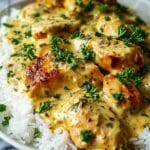 Creamy Smothered Chicken Rice is the ultimate comfort food, featuring tender seared chicken breasts bathed in a rich, creamy garlic Parmesan sauce served over fluffy long-grain white rice. This hearty and satisfying dish combines a luscious homemade sauce with perfectly cooked rice for a cozy, flavorful meal perfect for family dinners or special occasions.