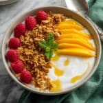 This Whipped Greek Yogurt recipe creates a light, creamy, and slightly sweet topping perfect for desserts, crepes, granola, or fresh fruit. Combining thick Greek yogurt, heavy cream, honey, and vanilla bean paste, it is whipped to medium stiff peaks, giving it a luscious texture that elevates any dish.