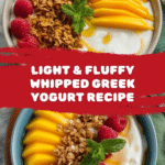Whipped Greek yogurt is a light and creamy treat that combines the tangy richness of Greek yogurt with the smoothness of whipped cream. Sweetened with honey and a touch of vanilla, it’s a versatile topping or snack you’ll love.