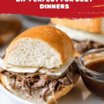 Keywords: French dip sandwiches, crockpot French dip, slow cooker beef sandwich, French dip recipe, au jus sandwich, easy crockpot recipe