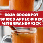 This cozy Crockpot Spiced Apple Cider recipe infuses apple cider with fragrant oranges, whole cloves, warm cinnamon sticks, and star anise, creating a warm and inviting drink perfect for cold weather. Enhanced with a splash of brandy or your choice of liquor, it brings a comforting kick to the classic fall beverage.