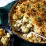 This Crusty Baked Cauliflower and Farro casserole is a comforting and wholesome dish combining tender roasted cauliflower, nutty farro, and creamy cheeses topped with a crispy pecorino-panko crust. It’s seasoned with fresh sage, capers, and lemon zest for bright, savory flavors and finished with a golden crust baked to perfection. Perfect as a hearty vegetarian main or an elegant side.