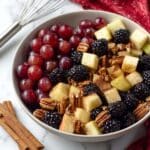 A vibrant and refreshing Fall Fruit Salad featuring a medley of sweet apples, juicy grapes, blackberries, and crunchy pecans, all tossed in a zesty orange and cinnamon maple syrup dressing. Perfect as a healthy snack or a festive side dish during autumn.