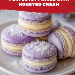 Delightfully delicate Floral Lavender Meringue Clouds feature crisp, airy meringue discs infused with culinary lavender and adorned with pressed pansies. Paired with a luscious honeyed crème fraîche, this elegant dessert offers a fragrant and visually stunning treat perfect for special occasions or tea time.