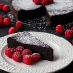9. Finish and serve: Once baked, allow the cake to cool. Dust the top with powdered erythritol before slicing and serving. Enjoy your rich, flourless chocolate cake!