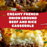This French Onion Ground Beef and Rice Casserole is a creamy, cheesy dish packed with deep umami flavors. It combines browned ground beef, tender rice, and savory French onion soup for a comforting meal that’s easy to prepare. Perfect for a family dinner or meal prep.