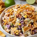Store leftovers in an airtight container in the refrigerator for up to 2 days. Because the Fritos will soften over time, keep any extra chips separate and add them right before serving if reheating or serving later. Reheat is not recommended as this salad is best enjoyed cold and crunchy.