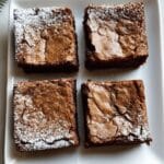 - Cool and finish: Allow the brownies to cool completely in the pan on a wire rack. Once cooled, dust the surface with confectioners’ sugar and cut into squares before serving.