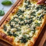This Greek Roasted Garlic Spinach White Pizza features a delicious blend of roasted garlic, sautéed spinach, and a combination of creamy ricotta, mozzarella, feta, and parmesan cheeses. Topped with oregano and optional red pepper flakes for a subtle kick, this pizza balances rich flavors with fresh herbs on a crispy crust, making it a perfect vegetarian meal for any occasion.
