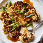 - Serve: Arrange the grilled cauliflower steaks on a platter. Generously slather with the thickened teriyaki sauce, then garnish with thinly sliced scallions and toasted sesame seeds. Serve immediately.