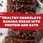 Keywords: Healthy banana bread, chocolate banana bread, oat flour bread, nut butter banana bread, protein banana bread, low sugar chocolate bread, vegan butter alternative