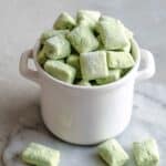 A healthy twist on the classic Muddy Buddies snack, featuring nutritious Shredded Wheat cereal coated in a smooth blend of matcha green tea white chocolate and almond butter, lightly sweetened with powdered erythritol for a guilt-free, crunchy treat that’s perfect for snacking straight from the freezer.