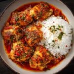 Chicken Cacciatore is a classic Italian dish featuring tender chicken pieces simmered in a rich, flavorful sauce made from bell peppers, onions, garlic, tomatoes, and aromatic herbs. This hearty rustic stew is perfect for a comforting dinner, combining savory, tangy, and aromatic elements for a deliciously satisfying meal.