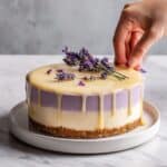 Keywords: Honey Lavender Cheesecake, no-bake cheesecake, floral cheesecake, honey dessert, lavender dessert, spring dessert, creamy cheesecake