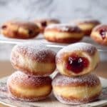 Keywords: jelly doughnuts, homemade doughnuts, fried doughnuts, yeasted doughnut recipe, jam-filled doughnuts, classic dessert, deep-fried doughnuts