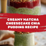 This Matcha Cheesecake Chia Pudding is a vibrant, dairy-free dessert combining the delicate earthiness of matcha with creamy plant-based yogurt and cream cheese, sweetened with agave syrup and layered with a crunchy almond, oat, and date crust crumble. Light, nutritious, and easy to prepare, it’s perfect for a healthy breakfast or a satisfying snack.