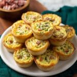 These Mini Quiches are perfect bite-sized savory treats made with a flaky store-bought pie crust filled with a creamy mixture of eggs, heavy cream, ham, cheddar cheese, green onions, and fresh parsley. Baked until golden and just set, they make a delightful appetizer, brunch item, or snack.