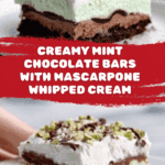 These Mint Chocolate Bars with Mascarpone Whipped Cream combine a rich chocolate crust with a creamy peppermint filling and a light, luscious topping. Perfect for mint and chocolate lovers, this dessert is refreshing and indulgent in every bite.