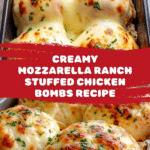 These Mozzarella & Ranch Chicken Bombs are a flavorful and cheesy twist on classic stuffed chicken. Each breast is filled with a creamy, savory ranch and cheese mixture, then seared and baked to juicy perfection. It’s a simple yet impressive dish perfect for any night of the week.