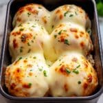Mozzarella & Ranch Chicken Bombs are juicy boneless chicken breasts stuffed with a creamy blend of mozzarella, cream cheese, ranch seasoning, garlic, and onion powder. Searing the stuffed chicken on the stovetop locks in flavors and creates a golden crust before finishing in the oven for a bubbly, melty center. This easy-to-make, flavorful dish is perfect for a comforting weeknight dinner that feels indulgent yet simple.