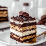 Keywords: No Bake Cake, Chocolate Peanut Butter Cake, Peanut Butter Mousse, Graham Cracker Cake, Dessert, No Bake Dessert