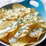 Ohio Nachos is a delicious twist on classic nachos using kettle-style potato chips smothered in a creamy, cheesy sauce made from milk, cream cheese, and Parmesan, then topped with crumbled blue cheese and fresh chives. This easy-to-make appetizer combines creamy, tangy flavors with a satisfying crunch, perfect for game days or casual gatherings.