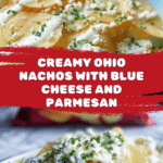 Ohio Nachos is a unique twist on the classic snack, featuring kettle-style chips topped with a creamy, garlicky cheese sauce and crumbled blue cheese. This indulgent treat is perfect for sharing at game day or casual gatherings.