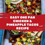 Keywords: chicken tacos, pineapple tacos, one pan meal, chipotle chicken, easy taco recipe, baked chicken, Mexican inspired