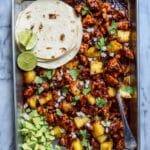 Keywords: chicken tacos, pineapple tacos, one pan meal, chipotle chicken, easy taco recipe, baked chicken, Mexican inspired