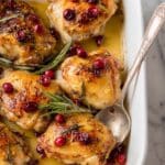 Keywords: cranberry chicken, rosemary chicken, one-pan chicken recipe, baked chicken thighs, holiday chicken, gluten free chicken dish