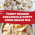 A fun and flavorful twist on the classic puppy chow snack, Orange Creamsicle Puppy Chow combines the creamy sweetness of vanilla pudding with the bright citrus zing of orange jello. This easy no-bake treat features crunchy Chex cereal coated in white chocolate and flavored powder mixes, perfect for parties, snacks, or holiday desserts.