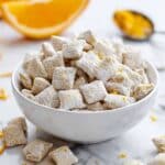 Keywords: puppy chow, orange creamsicle, snack, white chocolate, Chex mix, no-bake dessert, party snack