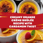 This luscious Orange Crème Brûlée recipe combines the classic creamy custard dessert with fragrant orange zest and a hint of cardamom for a bright, aromatic twist. Silky smooth and topped with a crisp caramelized sugar crust, this elegant dessert is perfect for special occasions or an indulgent treat.