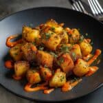 - Prepare the Potatoes: Preheat your oven to 425°F (220°C). Peel the potatoes and cut them into bite-sized chunks. Toss the potato pieces with olive oil, smoked paprika, and salt ensuring they are well coated.